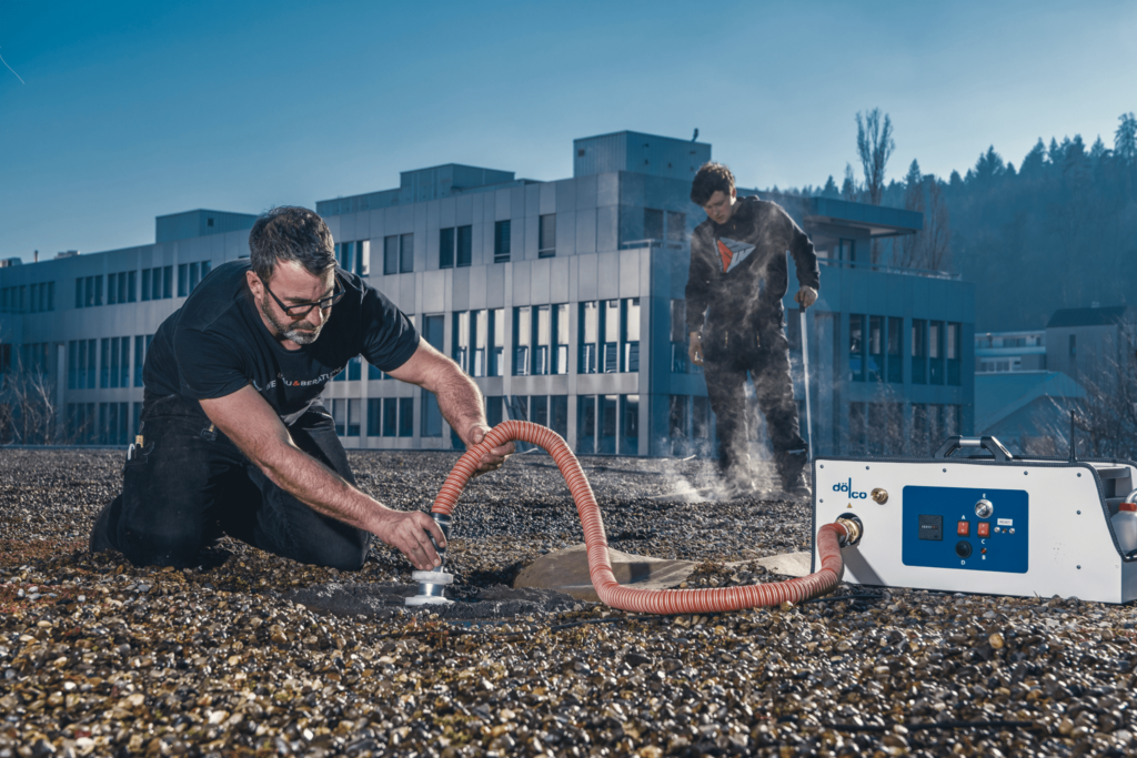 Angebot anfordern für Zustandsanalysen, Leckortung, Trocknung & Unterhalt – für Flach- und Steildächer.
