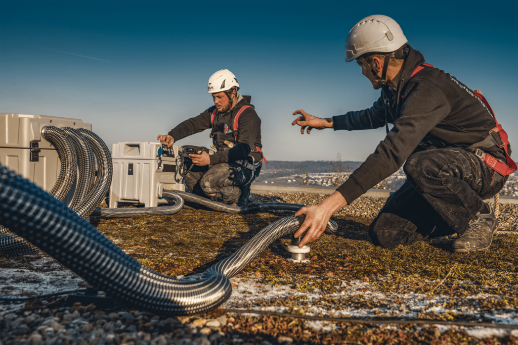 Mit unserer Dichtigkeitsprüfung stellen wir sicher, dass die Dachhaut Ihres Neubaus zuverlässig dicht ist und langfristig vor Feuchtigkeit und Bauschäden schützt.