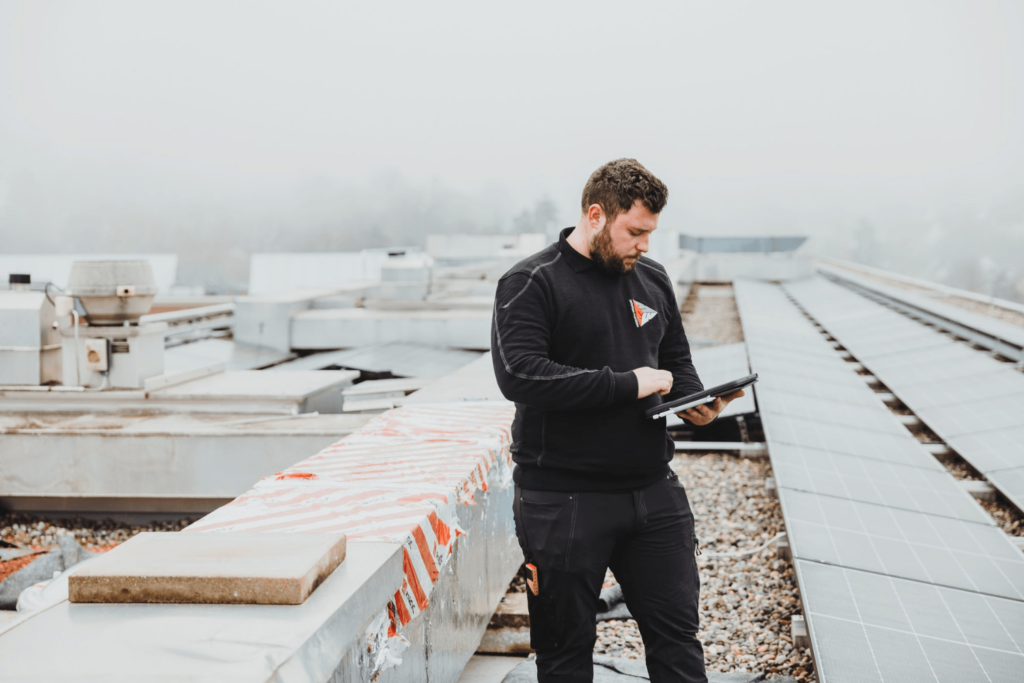 Unser intelligentes Flachdachüberwachungssystem erkennt Undichtigkeiten sofort und benachrichtigt Sie umgehend per App, um grössere Schäden zu vermeiden.