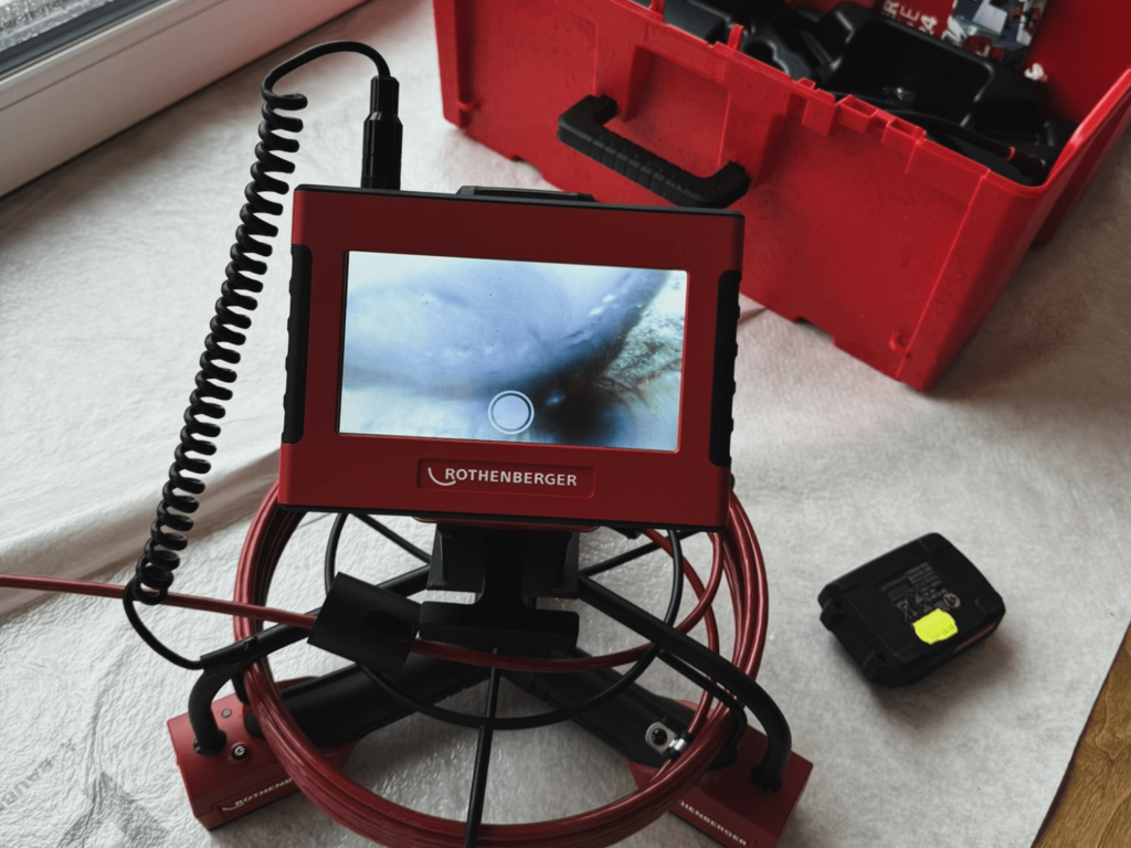Mit einem flexiblen Endoskop prüfen wir Dachabflüsse durch kleine Öffnungen. Die Kamera liefert Echtzeitbilder, um Risse, Leckagen, Korrosion oder Verstopfungen präzise zu erkennen.