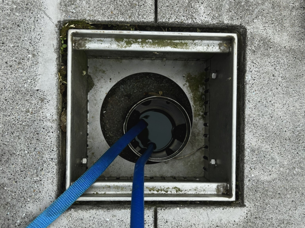 Mit dem Rückstau-Verfahren prüfen wir Dachentwässerungssysteme auf Undichtigkeiten. Durch Wasseranstau im Rohrsystem erkennen wir Risse, defekte Verbindungen oder beschädigte Anschlüsse.