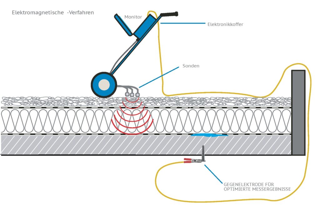 Mittels eines speziellen elektromagnetischen Messsystems erzeugen wir ein Feld, das über die Dachabdichtung geführt wird. Dabei messen wir Abweichungen in der Leitfähigkeit, die auf Schwachstellen oder Leckagen hinweisen. Die Analyse erfolgt in Echtzeit, und durch präzise Auswertung können selbst kleinste Undichtigkeiten genau lokalisiert werden, ohne die Dachschichten zu beschädigen.